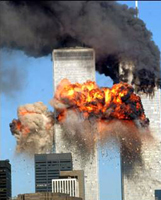 美国受到自珍珠港以来最大的恐怖袭击。世界贸易大楼的两座主楼在20分钟之内遭到被恐怖分子劫持的两架客机的连续撞击,