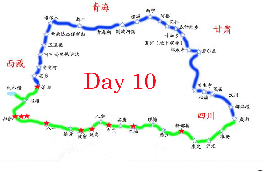 离开纳木错后正式踏上青藏线。青藏线海拔都在4500m以上,但道路很好,风光与川藏线截然不同。这里的山脉更辽阔,线条更柔和。下午行驶在羌塘草原上,蓝天下的白云漂浮在半空,偶尔一块乌云下形成一片雨帘,视野所及之处全是绿色的地毯和悠闲的牛羊,人间天堂不过如此吧。 今晚住那曲,海拔4460m,还给了个四楼,这是此次出行住的最高的一晚。明天要早起赶路,希望今夜能睡个好觉……